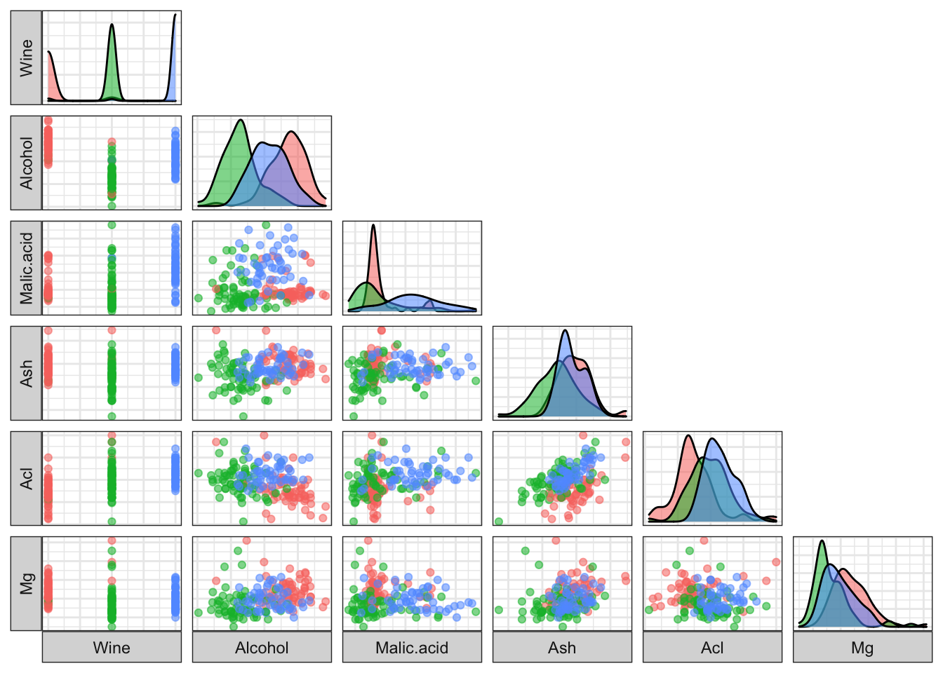 ## $ Malic.acid : num 1.71 1.78 2.36 1.95 2.59 1.76 1.87 2.15 1.64 1.35 ...