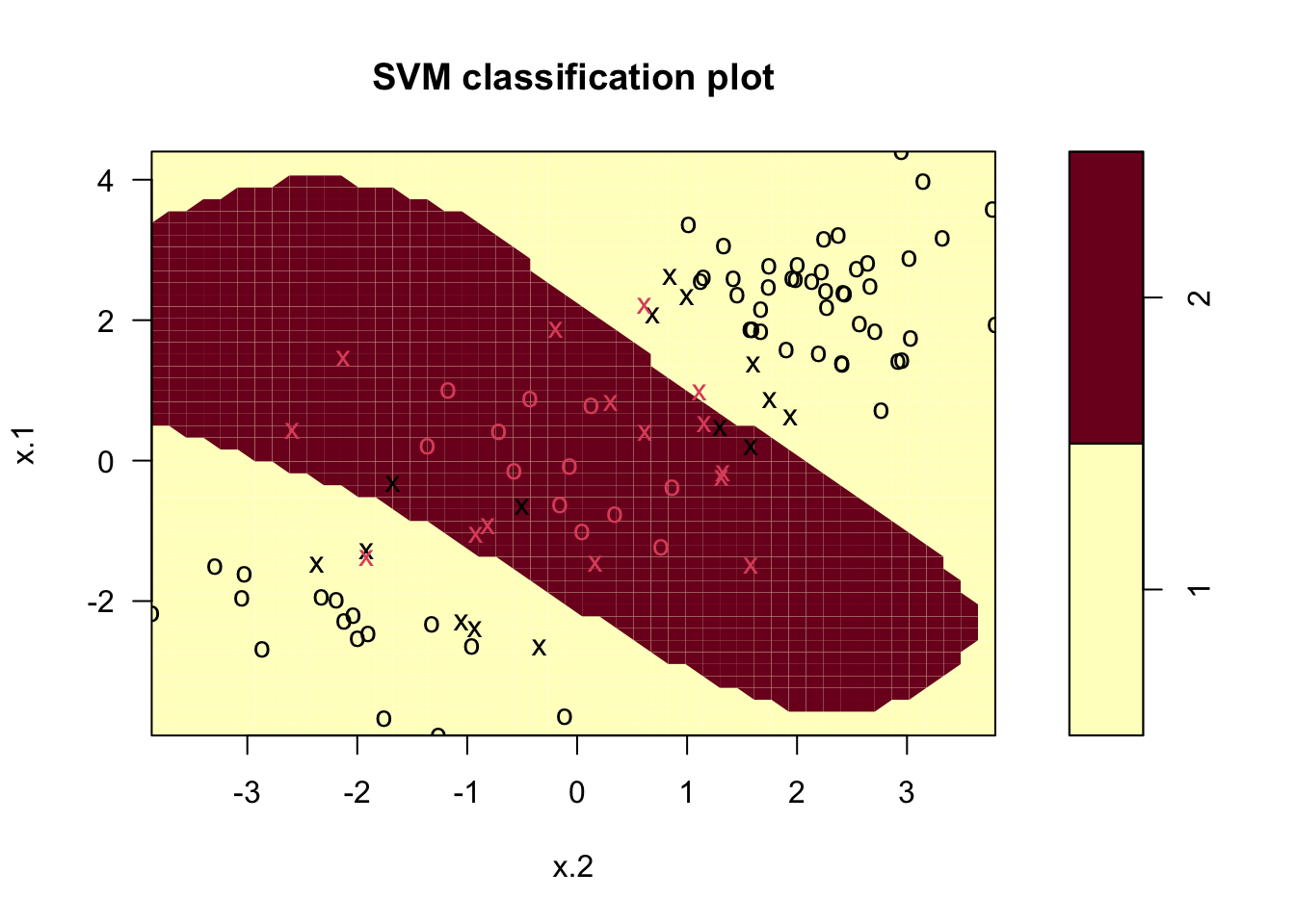 svmfit = svm(class~., data = nonlinear_train, kernel = "radial", gamma = 1, cost = 1)