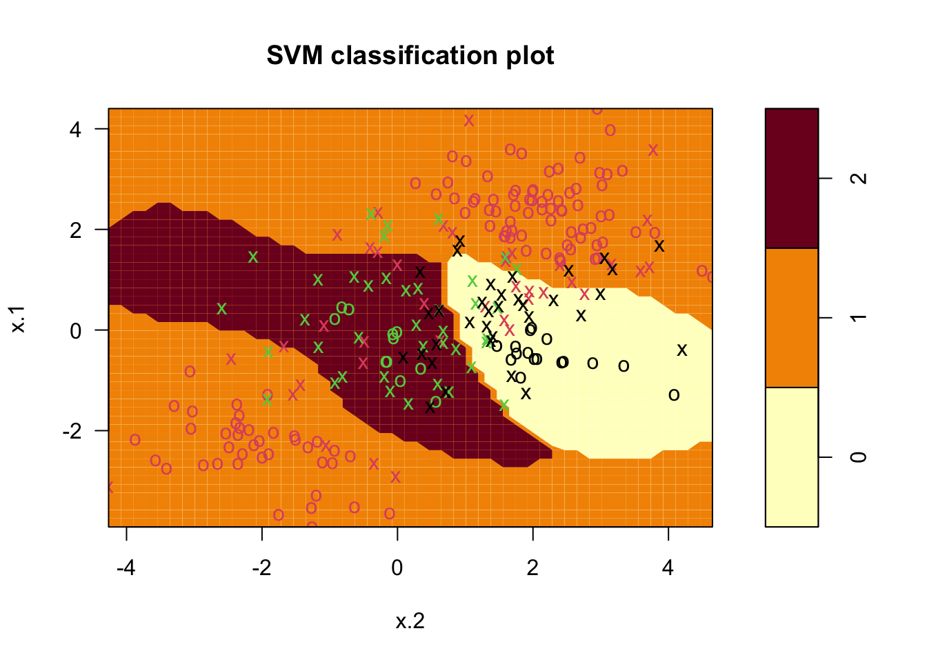 svmfit = svm(class~., data = data_3_classes, kernel = "radial", cost = 10, gamma = 1)