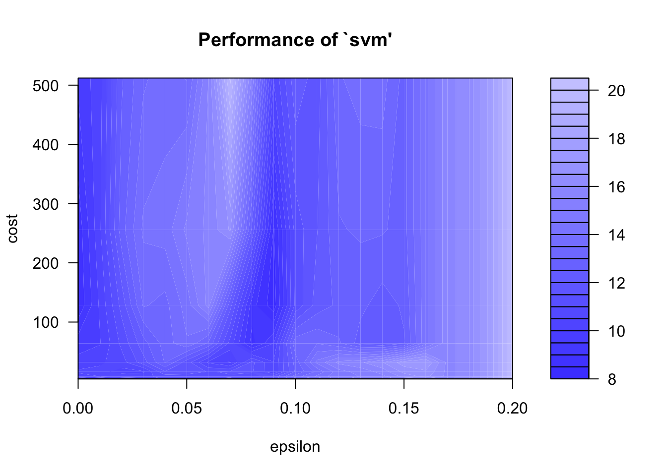 ranges = list(epsilon = seq(0,0.2,0.01), cost = 2^(2:9))